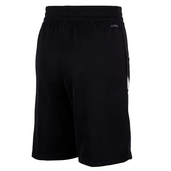 The 3-Stripe Adidas Shorts offer comfort and style for school and practice. These polyester knit shorts feature an elastic waistband with inner drawcord to give him an adjustable fit, two on-seam pockets to store his essentials, and an Adidas logo with 3-Stripes on the left leg, for a sporty, athletic look he will love.