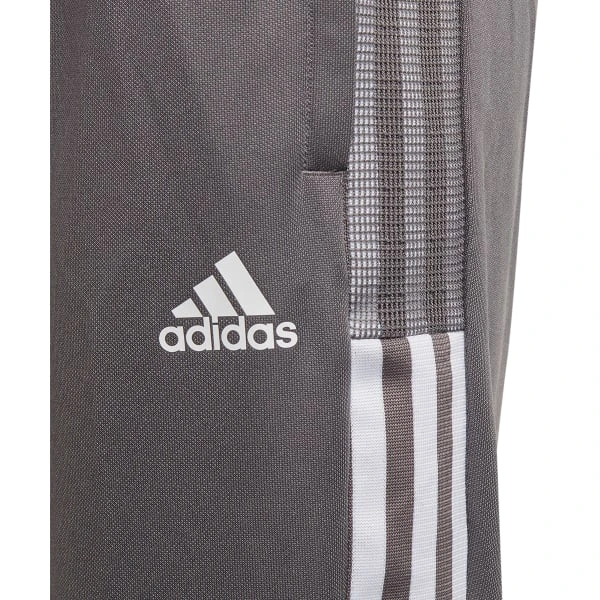 Too good to limit to the pitch. These adidas Tiro pants debuted as training wear, but they’re now a streetwear staple. That’s why the cut on this juniors’ pair is roomy at the thigh, to accommodate soccer shorts underneath. Ankle zips allow you to pull the track pants on over sneakers. Ribbed details bring in the shape at the lower legs. Moisture-absorbing AEROREADY ensures comfort. This product is made with Primegreen, a series of high-performance recycled materials.