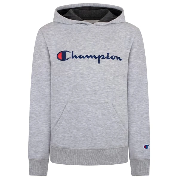 The Champion fleece hoodie features long sleeves, embroidered champion script and a kangaroo pocket.