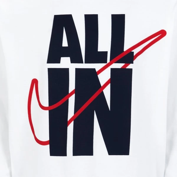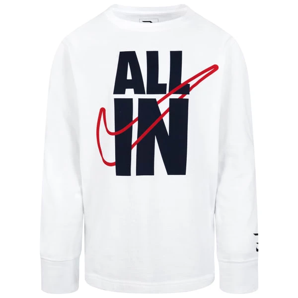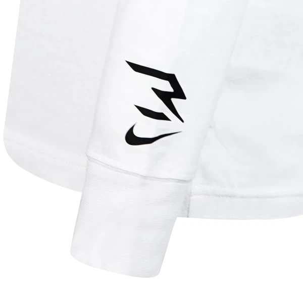 Tell the world where your mindset is without uttering a word in this regular fit tee from Nike 3BRAND by Russell Wilson. It is made of soft jersey knit fabric, long sleeves with ribbed cuffs provide lightweight warmth and cozy vibes and the tagless crewneck provides a comfy feel. Are you All In? 3% of all 3BRAND revenue is donated to the Why Not You Foundation, a nonprofit organization founded by Russell and Ciara in 2014 dedicated to fighting poverty through education, empowering youth to lead with a why not you attitude.