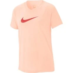 The Nike Girls’ 7-16 Dri-Fit Swoosh V-Neck Short-Sleeve Training Tee features sweat-wicking technology to help you stay dry and comfortable. Dri-FIT technology helps you stay dry, comfortable and focused.