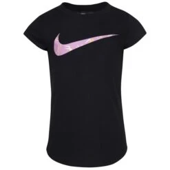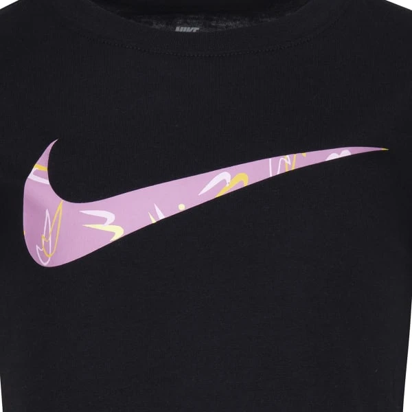 This comfy cotton tee by Nike is made of soft jersey knit fabric and features a large Swoosh logo with a printed fill across the chest for a fun look kiddos can be comfy in.