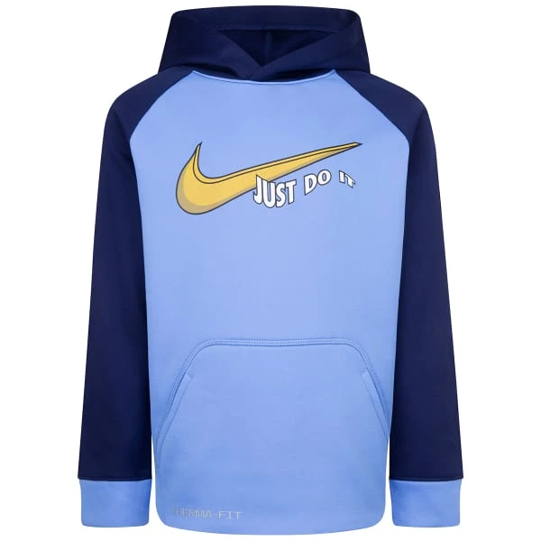 Keep your kiddo cozy in the Nike Colorblock Therma-FIT Pullover Hoodie. Made with soft fleece fabric that holds in warmth without the bulk, kids are free to play even when the temps drop.